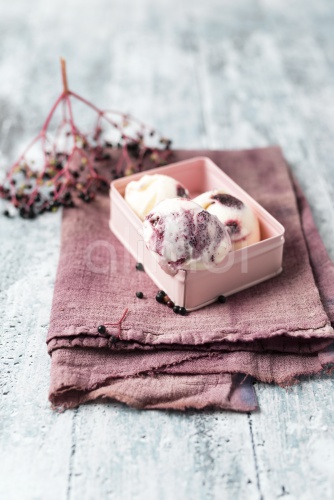 Vanilla ice cream with raspberry sauce