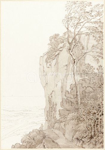 John White Abbott (British, 1763 - 1851), Sheer Cliffs above a Coastal Road, 1810, pen and black ink with gray wash on wove paper