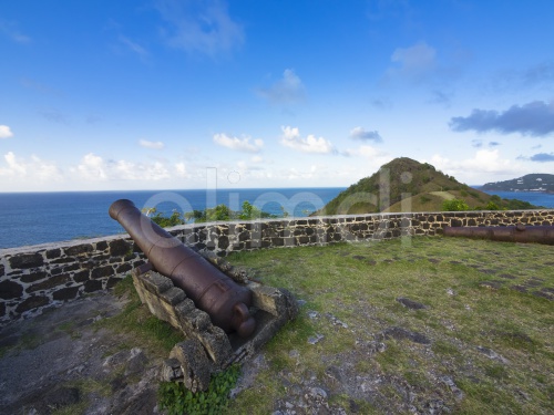 Cannon at Fort Rodney, Pigeon Island, Rodney Bay, Cape Estate, Windward Islands, Lesser Antilles, Saint Lucia