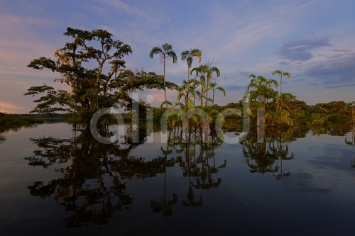Trees, dusk, RÃo Cuyabeno, Cuyabeno River, Ecuador