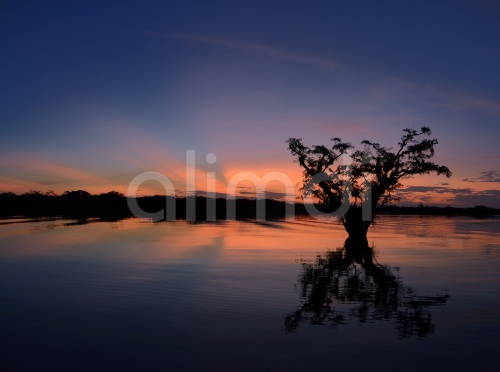 Trees, sunset, RÃo Cuyabeno, Cuyabeno River, Ecuador