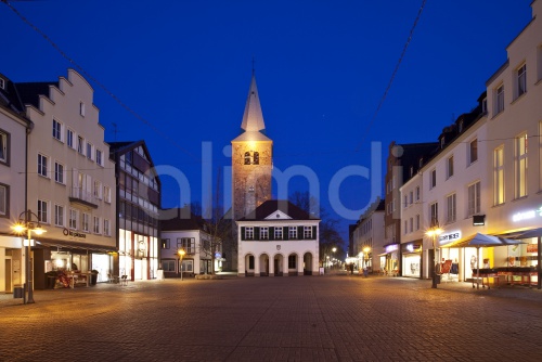 The old town hall and St. Agatha Church at twilight, Dorsten, Ruhr area, North Rhine-Westphalia, Germany