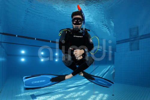 Dive training, balancing, in a swimming pool, Nuremberg, Bavaria, Germany