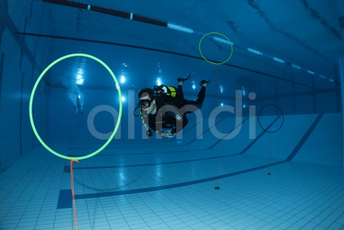 Dive training, scuba diver in a swimming pool, Nuremberg, Bavaria, Germany
