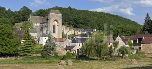 The medieval village Saint-Amand-de-Coly with its fortified Romanesque abbey church, Dordogne, Périgord, France