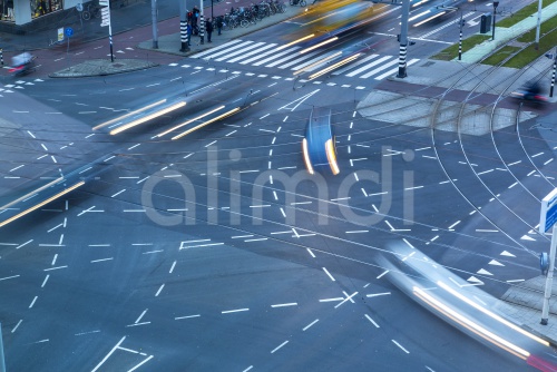 Large road junction, road markings for various turning lanes, Rotterdam, Holland, The Netherlands