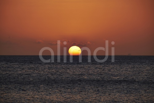 Caribbean, Netherlands Antilles, Bonaire, sunset above the ocean