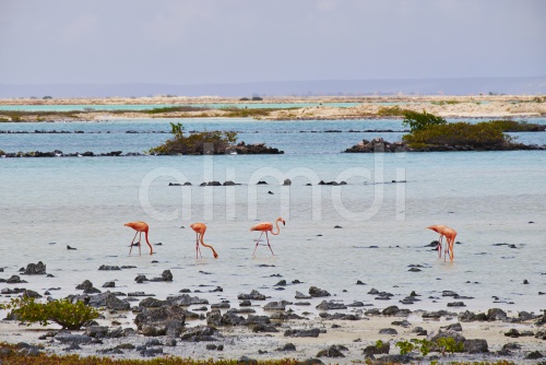 Caribbean, Netherlands Antilles, Bonaire, Flamingos in water