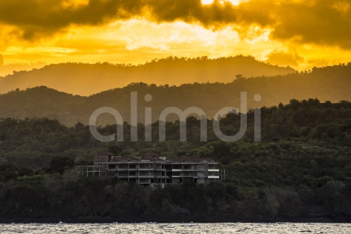 Indonesia, Bali, unfinished building at coast in the evening