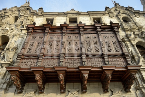 Peru, Lima, UNESCO world heritage site, Wooden oriel at the Archbisho's palace