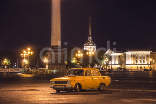 Russia, Saint Petersburg, Run down car on Place Square, Admirality in background