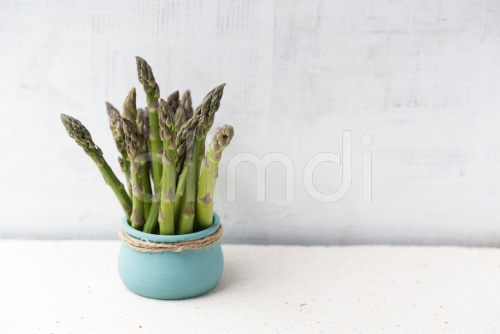 Vessel with green asparagus