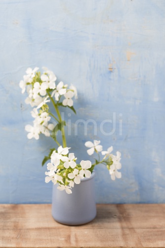 Blossoming annual honesty in a pot