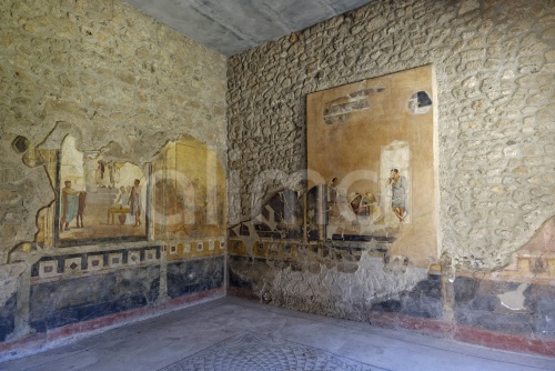 Italy, Campania, Pompeii, residential house, room with old roman fresco