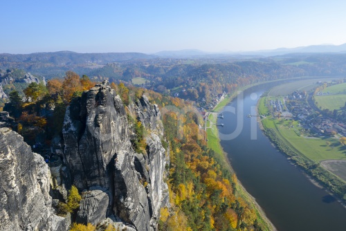 Germany, Saxony, Saxon Switzerland, Elbe Sandstone Mountains, Elbe River, view from the Bastei
