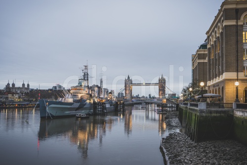 United Kingdom, England, London, Queen's Walk, HMS Belfast and Tower bridge