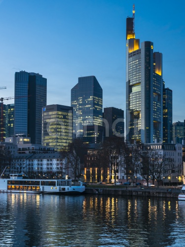 Germany, Hesse, Frankfurt, Financial district in the evening, Main river