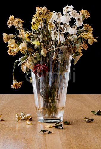 Vase of dead and decaying flowers. Representing feelings of loneliness, sadness, depression and loss of life.