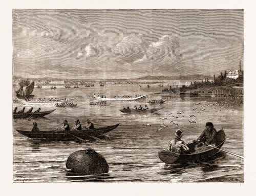 THE EASTERN QUESTION: THE DEPOSED SULTAN ABD-UL-AZIZ BEING CONVEYED TO TOP-CAPOU, SERAGLIO POINT, SARAYBURNU, TURKEY, 1876