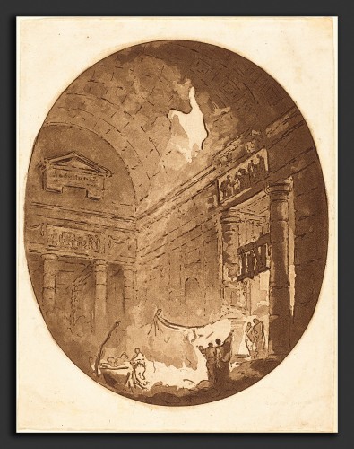 Jean-Claude-Richard, Abbé de Saint-Non after Hubert Robert (French, 1727 - 1791), Interior of a Roman Villa, 1765, etching and aquatint in brown on laid paper